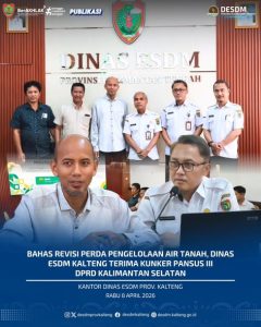 PALANGKA RAYA – Dinas Energi dan Sumber Daya Mineral (ESDM) Provinsi Kalimantan Tengah menerima Kunjungan Kerja (Kunker) dari Panitia Khusus (Pansus) III Dewan Perwakilan Rakyat Daerah (DPRD) Provinsi Kalimantan Selatan, Rabu (8/4/2026). Rombongan kunker dari provinsi tetangga tersebut dipimpin langsung oleh Wakil Ketua Pansus III DPRD Kalsel, H. Mushaffa Zakir, LC.