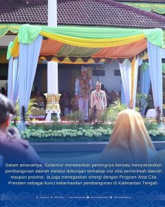 Peringatan hari jadi tahun ini berlangsung penuh khidmat di Halaman Kantor Bupati. Gubernur Kalimantan Tengah H. Agustiar Sabran memimpin jalannya upacara sekaligus mengajak seluruh pihak untuk terus bersinergi membangun daerah, memperkuat ketahanan pangan, serta menyiapkan generasi muda yang cerdas dan berdaya saing.