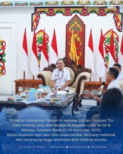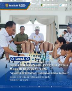 Gubernur Kalimantan Tengah H. Agustiar Sabran menunjukkan dukungannya terhadap dunia olahraga dengan melepas secara resmi Tim Catur Kalimantan Tengah yang akan berlaga pada Kejurnas Catur ke-50 di Mamuju, Sulawesi Barat, 7–14 November 2025.