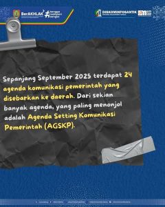 Tercatat sebanyak 24 agenda komunikasi pemerintah diangkat, dengan Agenda Setting Komunikasi Pemerintah (AGSKP) sebagai agenda terbesar.