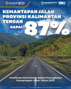 Tingkat kemantapan jalan provinsi kini mencapai 87%, dengan total panjang jalan 17.931,4 km di seluruh wilayah Kalteng.