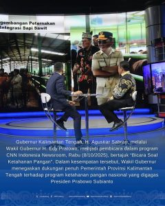 Wakil Gubernur Kalimantan Tengah H. Edy Pratowo hadir dalam program Newsroom CNN Indonesia, membahas komitmen Pemerintah Provinsi Kalimantan Tengah dalam mendukung program ketahanan pangan nasional.