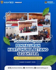 Kotawaringin Timur – Pemerintah Provinsi Kalimantan Tengah melalui Dinas Energi dan Sumber Daya Mineral (ESDM) resmi menyalurkan Kartu Huma Betang Sejahtera kepada warga di Kecamatan Parenggean, Kabupaten Kotawaringin Timur pada Kamis (12/3/2026).