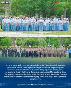 Ia turut mengajak generasi muda Kalimantan Tengah untuk menjaga persatuan dalam keberagaman, menjauhi hal-hal negatif seperti narkoba, minuman keras, judi online, dan pergaulan bebas, serta menjunjung tinggi nilai Huma Betang dan semangat Manggatang Utus.