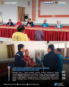 Palangka Raya – Untuk pertama kalinya, Provinsi Kalimantan Tengah menyelenggarakan Sertifikasi Kompetensi Tenaga Teknik Ketenagalistrikan melalui program vokasional khusus Tahun Anggaran 2025. Kegiatan yang digelar di SMK Negeri 1 Palangka Raya ini resmi dibuka pada rabu 1/10/25, dengan dukungan penuh Direktorat Jenderal Ketenagalistrikan Kementerian ESDM.